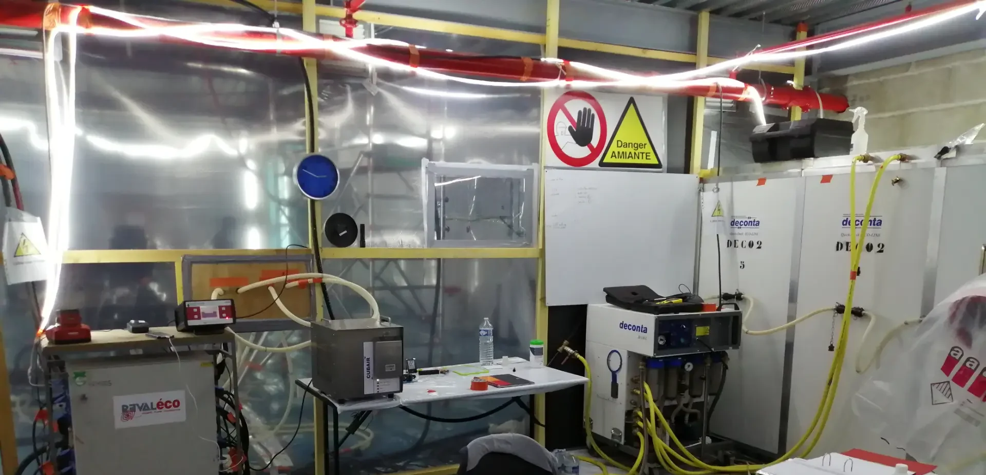 REVALECO dispose en propre de l’ensemble des équipements nécessaires aux chantiers de désamiantage et de déplombage. Ce parc matériel fait l’objet d’un suivi rigoureux avec contrôles périodiques et maintenance préventive selon les normes en vigueur.